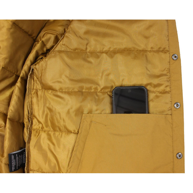 *100% Cotton shell *2 oz. 100% Polyester insulation *Water-repellant finish *Upper chest pocket with flap *Two lower welt pockets *Corduroy shirt collar *Shirt tail hem * Snap-up front closure *Regular Fit